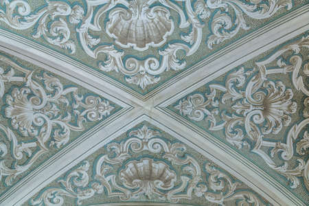 Chernivtsi, Ukraine - August 5, 2021. Painted ceiling with cracked paint in the Marble Hall of the Chernivtsi University of the 19th century.