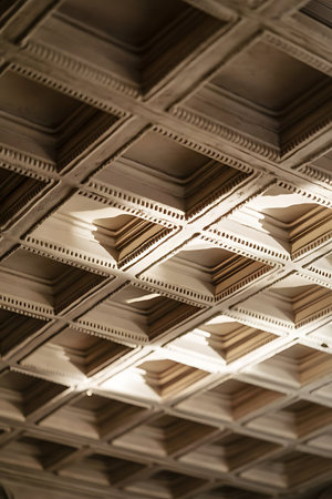 architectural detail close-up of intricate ceiling design, with fine details and textures visible, created with generative ai
