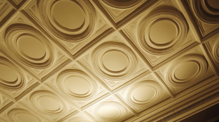 Discover the beauty of an elegant ornate ceiling design, featuring intricate circular patterns and textured finishes in warm tones, perfect for architectural inspiration and interior design projects.