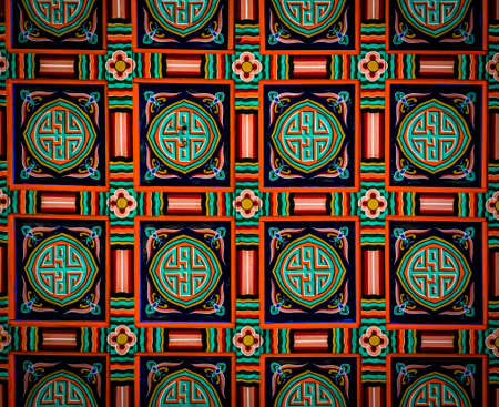 A ceiling panel from the entryway to one of the buildings at Changdeokgung Palace, Seoul, South Korea