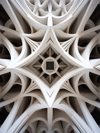 Elegant white vaulted ceiling with intricate partition patterns, creating a sense of architectural sophistication and depth. The interplay of light and shadow enhances the three-dimensional structure, making it ideal for design, interior, and architectural inspiration