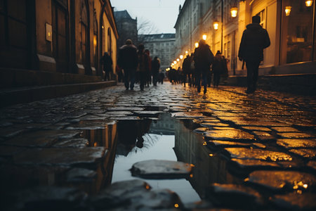 People walking on the street at evening