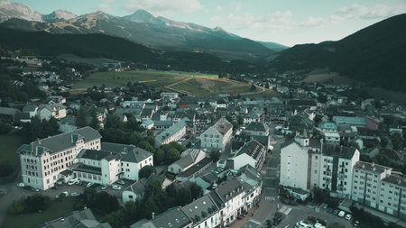 Aerial shot of town centre in Villard-de-Lans, French Alps