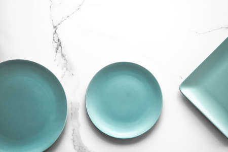 Turquoise empty plate on marble, flatlay - stylish tableware, table decor and food menu concept. Serve the perfect dish