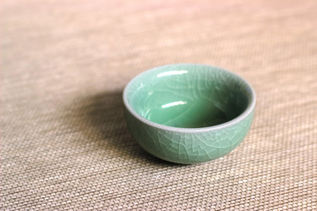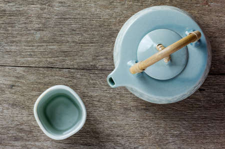 Celadon green ceramic on wood table background