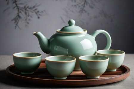 Chinese Tea Set and Teacup Still Life