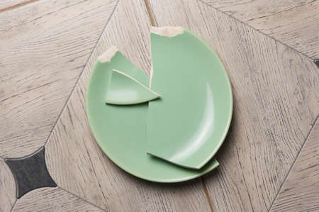 Broken green plate on gray background