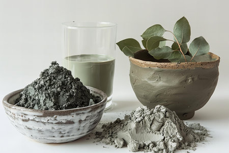 Clay in a glass next to a bowl of clay, high quality, high resolution