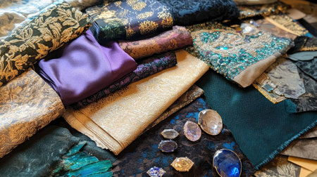 This vibrant image showcases a variety of textiles and fabrics, presenting a rich tapestry of colors, patterns, and textures ideal for design inspiration.