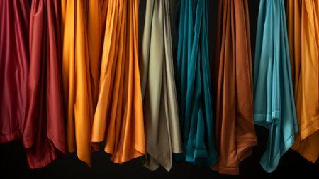 Folded colorful clothes are creating a wavy pattern, showcasing a vibrant and diverse selection of fabrics