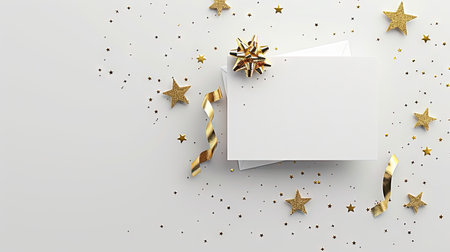 A white card adorned with elegant gold stars against a pristine white backdrop, creating a mesmerizing celestial effect.