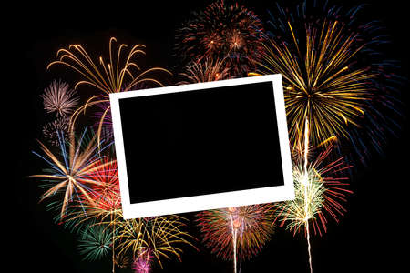 Silvester party New year Fireworks background banner panorama long- sparklers, fireworks and frame made of red bokeh lights on black night texture, with space for text, New Year's Eve