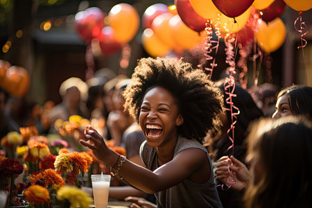 Portrait of African American girl in confetti, AI generated