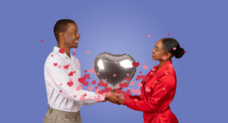 Couple sharing love and affection on Valentines Day with heart-shaped balloon