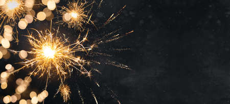 Christmas and New Year party background with sparkler and bokeh lights