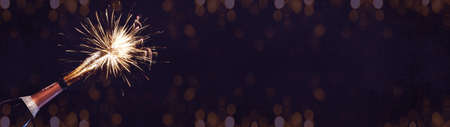 New Year's Eve, Silvester party New year Fireworks Firework background banner panorama long- Golden festive sparklers and bokeh lights in the dark black night