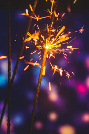 Christmas and New Year party sparkler on bokeh lights background