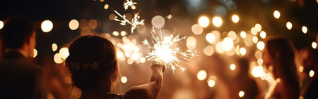 A person holding sparklers, celebrating a special occasion with bright lights and bokeh. A perfect image for capturing the joy and excitement of a festive event.