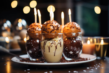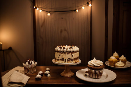 chocolate-themed birthday party with cupcakes, balloons, and streamers, created with generative ai