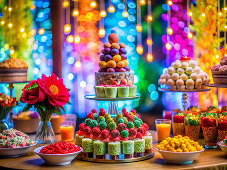 A colorful array of desserts showcases festive treats perfect for any celebration.