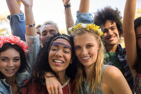 Portrait of smiling friends enjoying together at music festival