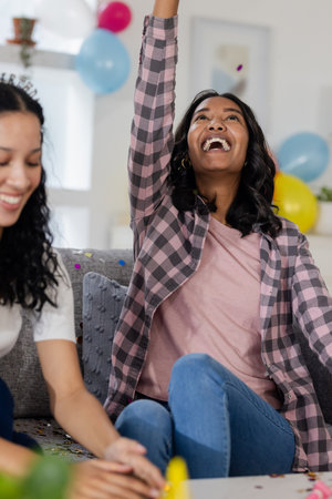 Happy Friends celebrating with confetti together having fun