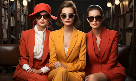 A group of four fashionable women in vibrant outfits, exuding confidence and elegance. Perfect for fashion, style, and beauty concepts.
