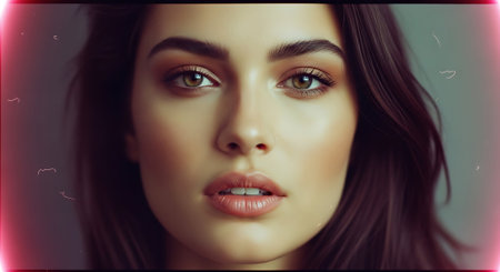 Portrait of a beautiful young woman with green eyes and long eyelashes