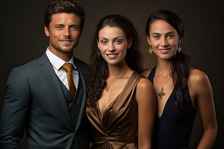 AI Generated. happy luxury woman model with professional makeup on black background monochrome
