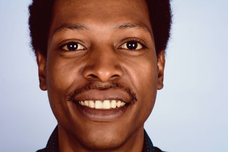 Portrait of young african american man smiling at camera.