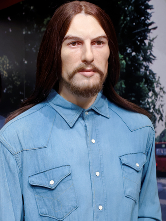 BLACKPOOL, JANUARY 14: Madame Tussauds, UK 2018. Wax figure of George Harrison, member The Beatles - English rock band formed in Liverpool in 1960.
