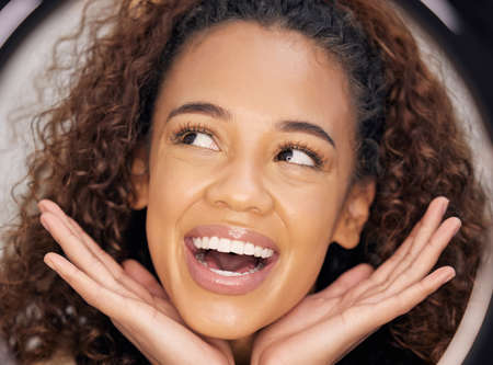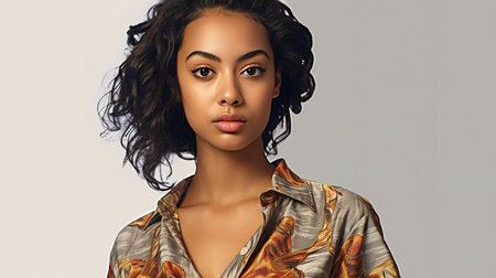 Beauty portrait of young african american woman with curly hairstyle.
