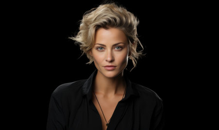 Portrait of a beautiful blonde woman with short hair on black background