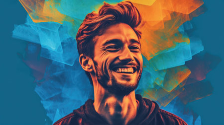Portrait of a handsome young man laughing while standing against colorful background