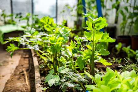 Cultivation of organic green leaf celery plants