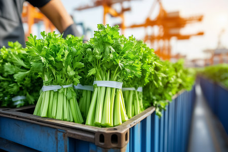 Fresh green celery plantation in organic vegetable farm