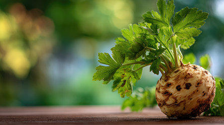 AI Generated. Tasty organic root celery on a brown wooden kitchen table