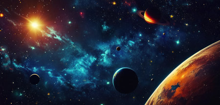 planets, stars and galaxies in outer space showing the beauty of space exploration.