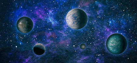 Chaotic space background. Planets, stars and galaxies in outer space showing the beauty of space exploration.