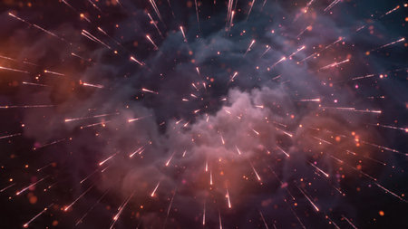 Bright explosions illuminate the vast darkness of space with radiant trails and fiery sparks.