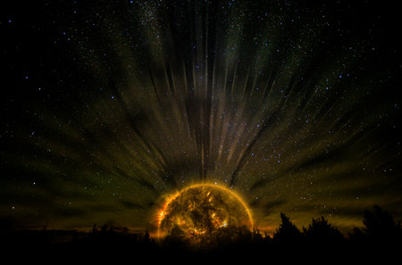 Dark extinct sun rises above the Earth. Elements of this image furnished by .