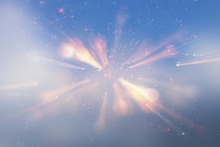 Exploding burst of glowing blue light particles radiating outward, resembling fireworks or cosmic energy.
