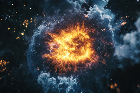 Cosmic Explosion with Fiery Halo Expanding in Space. Generative AI.