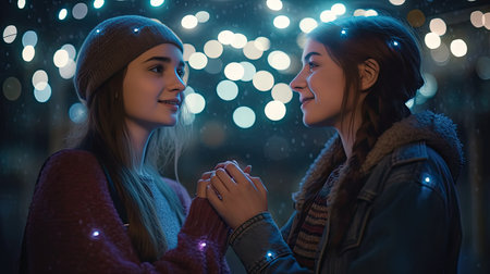 Realistic 3D illustration of a lesbian couple, 3D realistic