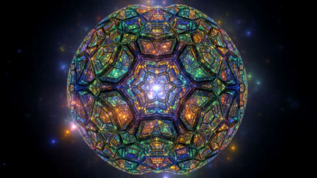 A detailed close up image of a beautifully designed sphere featuring an intricate geometric pattern meticulously crafted on its surface