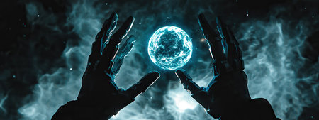 Glowing. Energy. Person Holding Magical Blue Orb, Abstract Mystic Power and Spirituality Concept