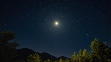A view of the stars of the Milky Way with the full Moon during the summer. Timelapse in comet mode.