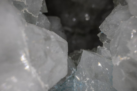 Extreme close up macro shot of beautiful natural geode geological crystals texture background.