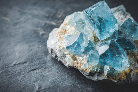 Beautiful blue crystals scattered on a rocky surface catching sunlight highlighting their clarity and unique formations in a natural setting.