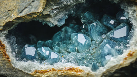 Discover a mesmerizing close-up of a geode, showcasing intricate crystal formations and vibrant blue colors, perfect for nature and geology enthusiasts.